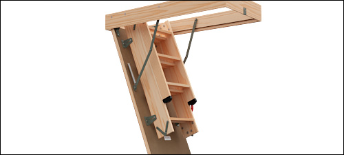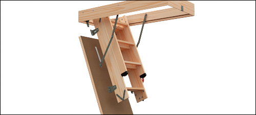 Carefully pull down the attic ladder and lid until the upper and lower stay arms lock into position.