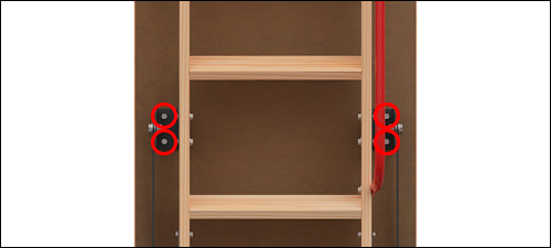 Reconnect the M8 bolt and nylock nuts that connects the upper and lower stay arms together on both sides of the ladder.