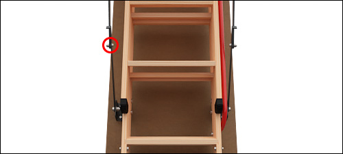 On one side of the ladder, undo the M8 bolt and nylock nut that connects the upper and lower stay arms together. Always hold onto the upper stay arm and don’t let go, rotate upwards to ease off the spring tension.