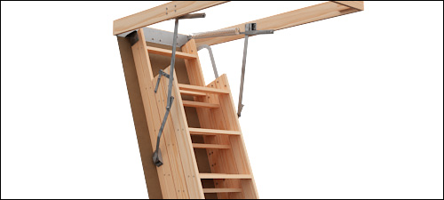 Pull down the attic ladder and lid until the upper and lower stay arms lock into position.